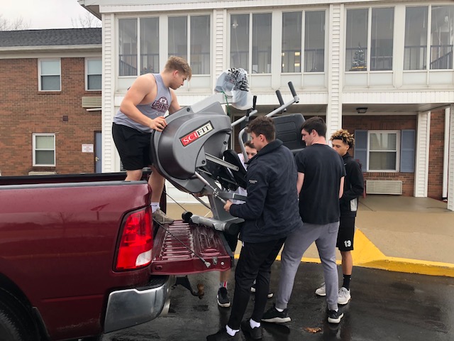 The Bethany Village fitness center bought replaced a recumbent bike and was looking for a new home for the former unit. Messiah Community in Urbana, Ohio jumped on the opportunity for their residents. With the assistance of the Bethany Village maintenance team and a few Urbana High School football players, the new bike was delivered and unloaded on February 15.
