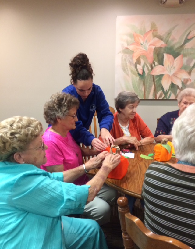 The students brought supplies for the craft and taught the residents how to make the little pumpkin covers. After the art project was completed, the students stayed and enjoyed an afternoon of fellowship with the St. Paul residents, sharing laughs and conversation.